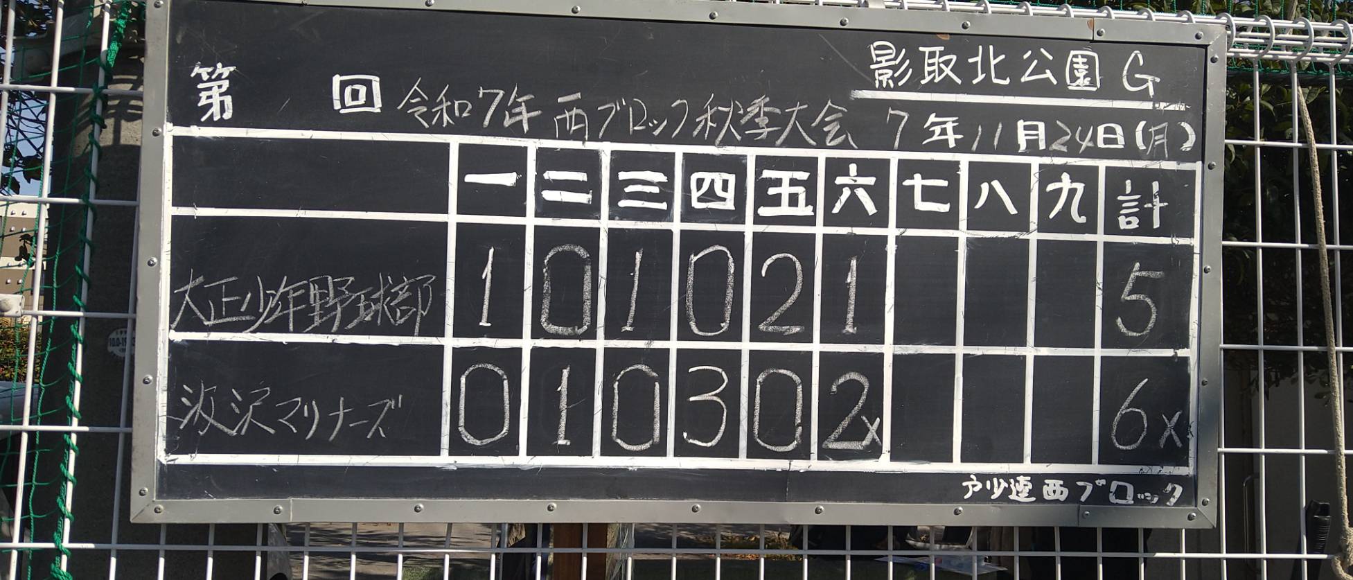 B《公式戦》 西ブロック秋季大会三位決定戦 (2025/11/24 8:00 影取北公園)